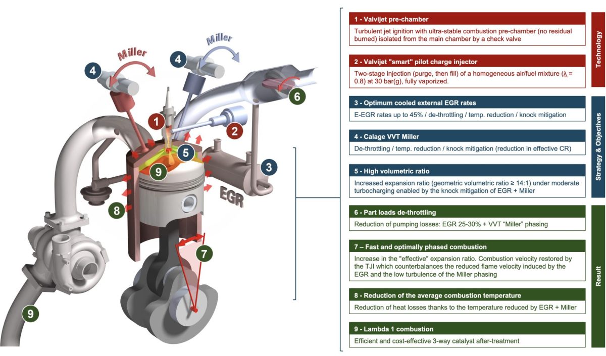 Variant No. 4, as implemented by Valvijet technology, provides all the features and all the control levers required to achieve a high-performance, fully controllable, high-efficiency stoichiometric TJI engine.